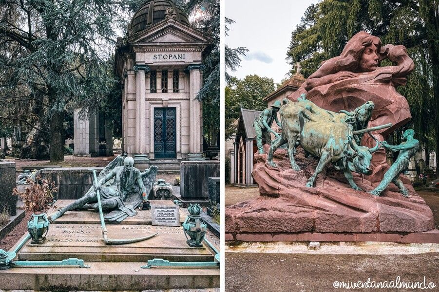 Se construyó en un terreno de más de 250.000 metros cuadrados a mediados del siglo XIX para unificar los insalubres cementerios que había en los distintos barrios. Poco a poco, las familias más adineradas de todo el país, no sólo de Milán y Lombardía, fueron construyendo exquisitos mausoleos y lápidas para sus familias. Lo que convirtió el espacio en toda una colección artística al nivel de otros de los cementerios más famosos del mundo, como el Pere Lachaise (París) o el de La Recoleta (Buenos Aires).
