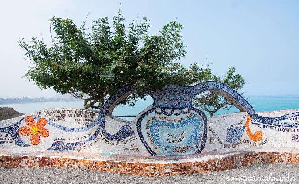 Esta explanada, en pleno Malecón de Miraflores, presidida por la escultura El Beso de Víctor Delfín, fue inaugurada el 14 de febrero de 1993. Y se diseñó inspirada en el Parque Güell de Barcelona. De ahí su decoración en trencadís con infinidad de frases y poemas escritos tanto en castellano como en quechua.