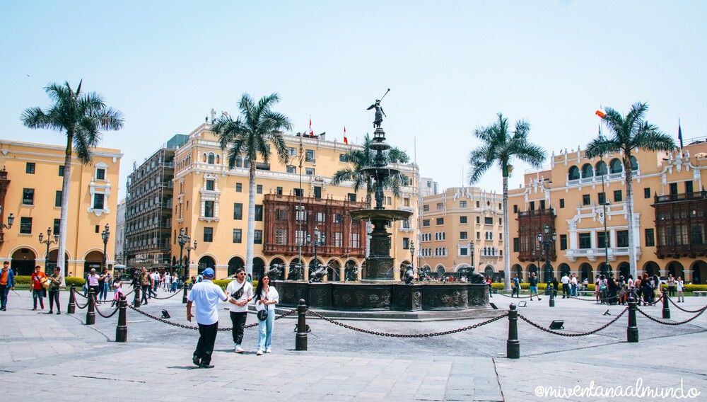A apenas dos pasos del Convento de San Francisco se encuentra el verdadero gran imprescindible del casco antiguo de Lima: la Plaza de Armas. El lugar en el que se fundó la ciudad y que es el corazón del Patrimonio de la Humanidad de la UNESCO del Centro Histórico de Lima. Así como también el punto exacto en el que en 1821 José de San Martín declaró la Independencia del Perú.