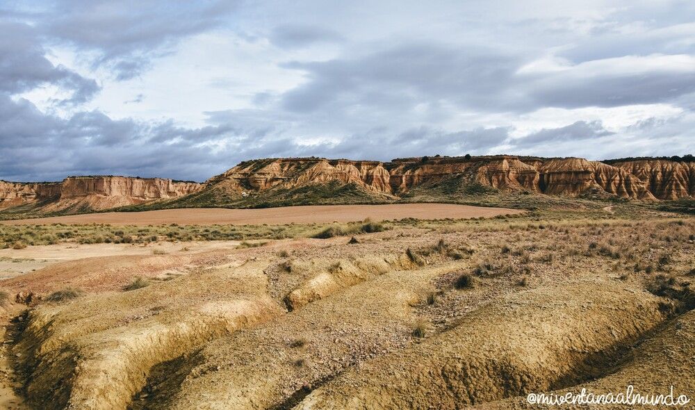 Bordeando el Castildetierra, en su parte posterior, se encuentra el último de los imprescindibles que ver al visitar las Bardenas Reales, el Barranco de las Cortinas. Un antiguo cauce hídrico formado por siglos y siglos de erosión causada por las aguas procedentes de la cuenca del Ebro. Y por el que aún corre el agua cuando las lluvias aprietan.